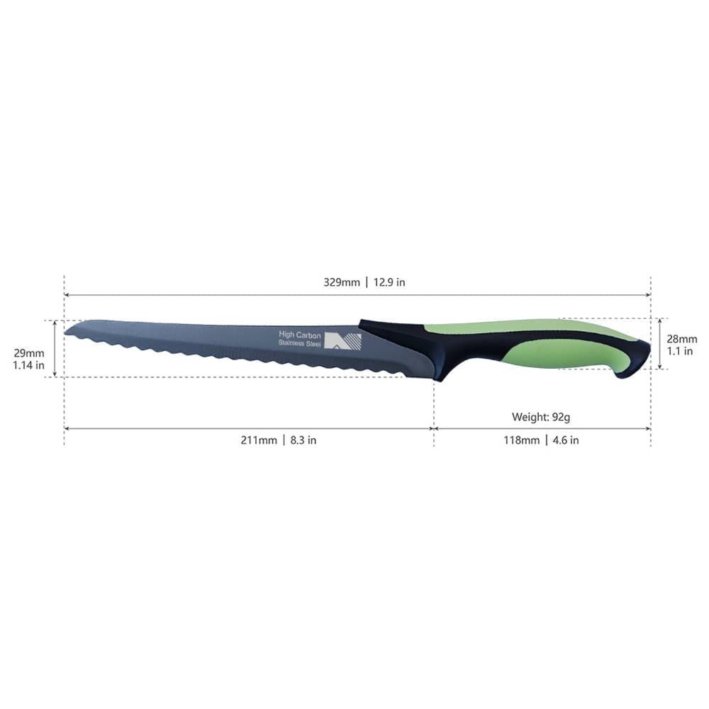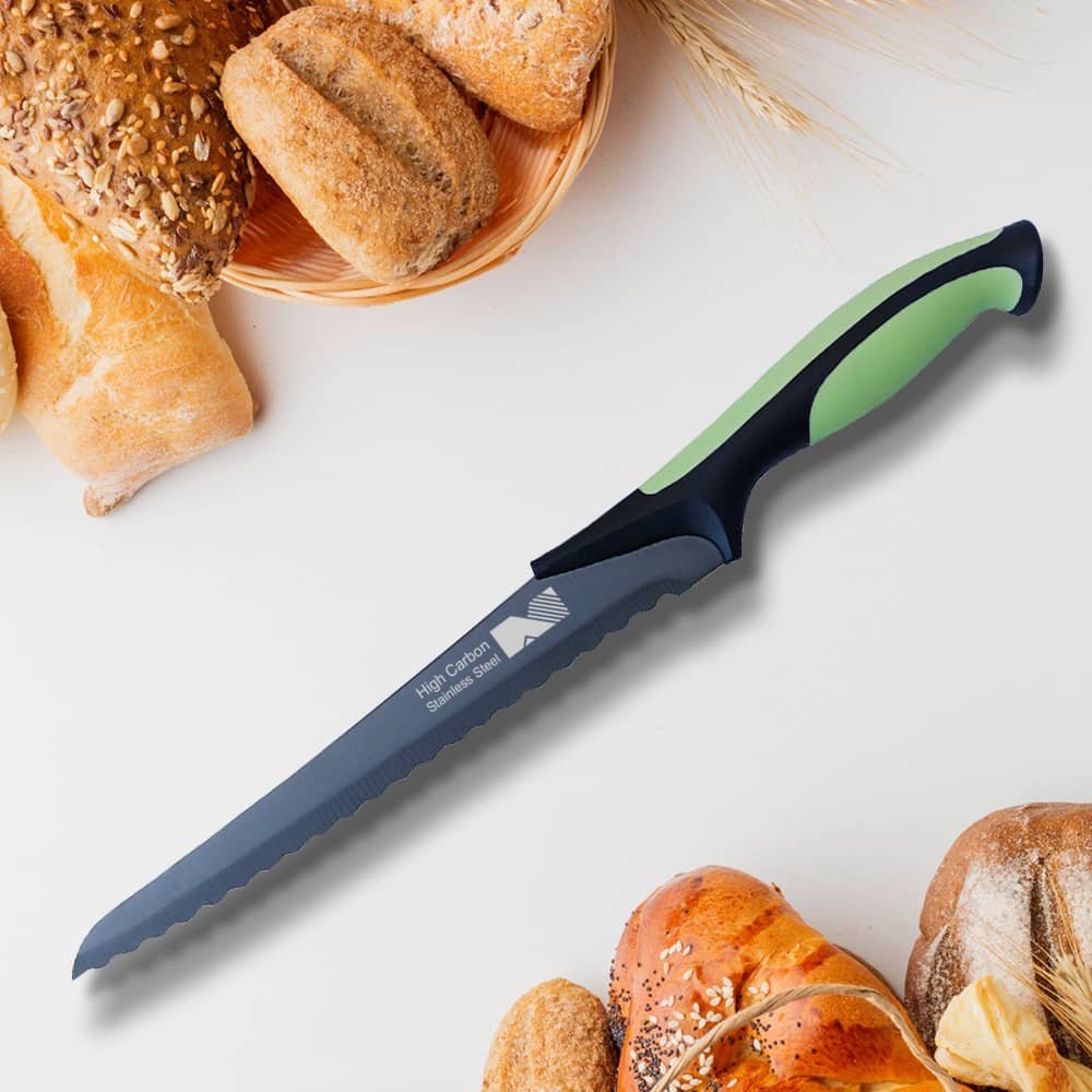 Designed for modern sustainability, features high-carbon stainless-steel blades crafted. This knife has a long, narrow blade with a serrated edge that’s ideal for slicing through crusty loaves without compressing their delicate interiors.