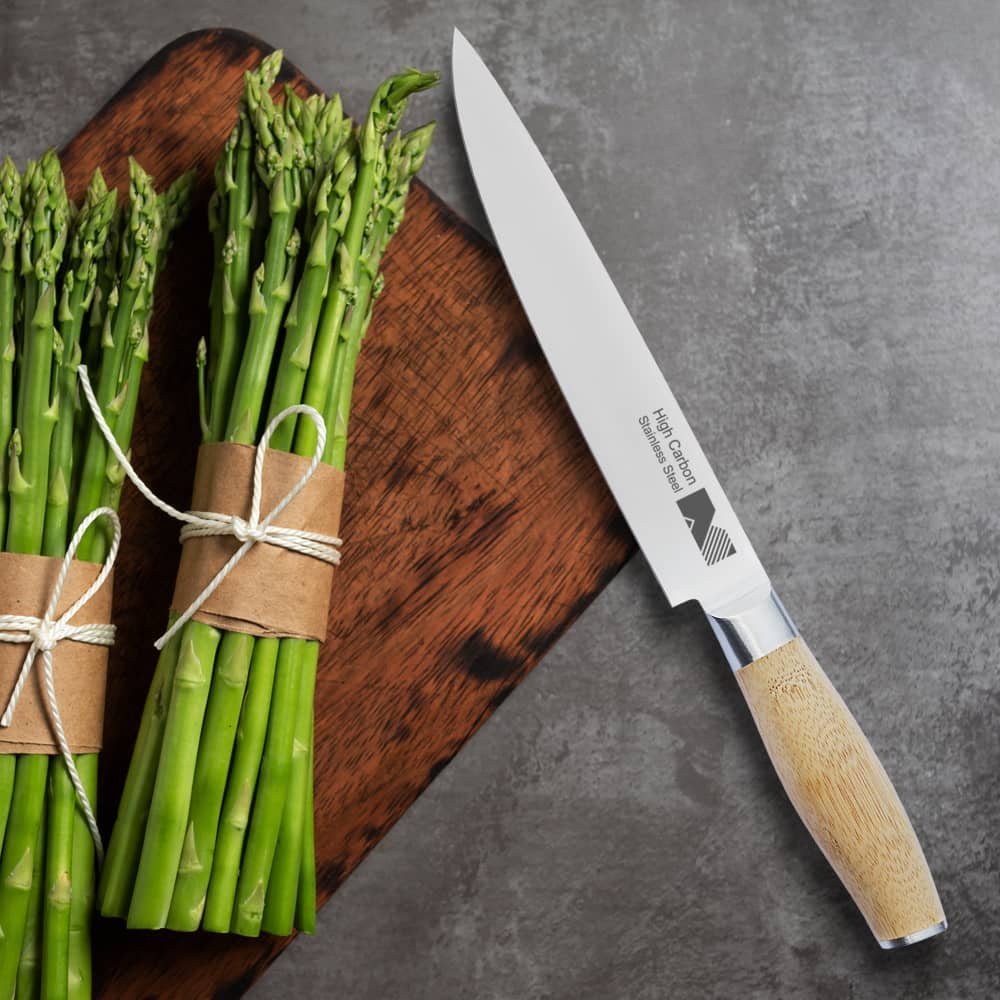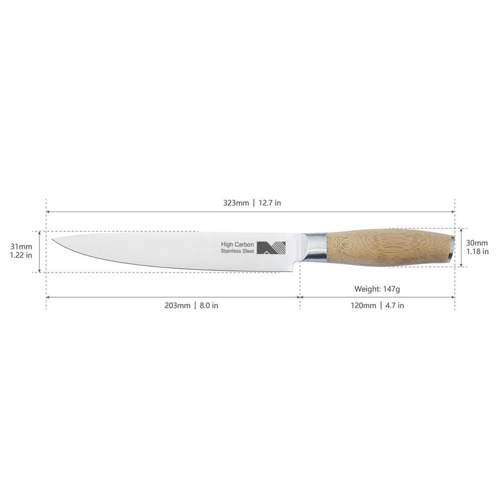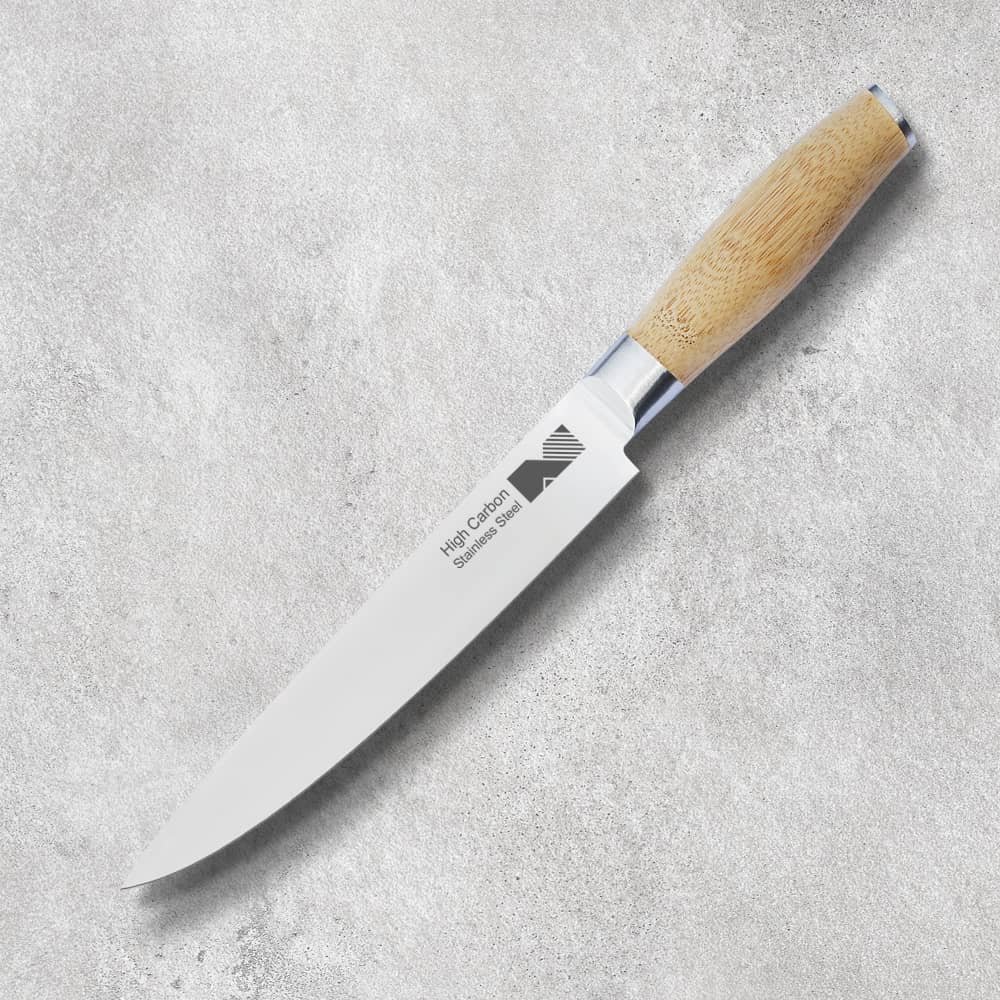 Designed for modern sustainability, features high-carbon stainless-steel blades crafted. This knife has a long, slender blade that carves ingredients into uniform portions, and a pointed tip that cuts into joints and helps navigate around bones.