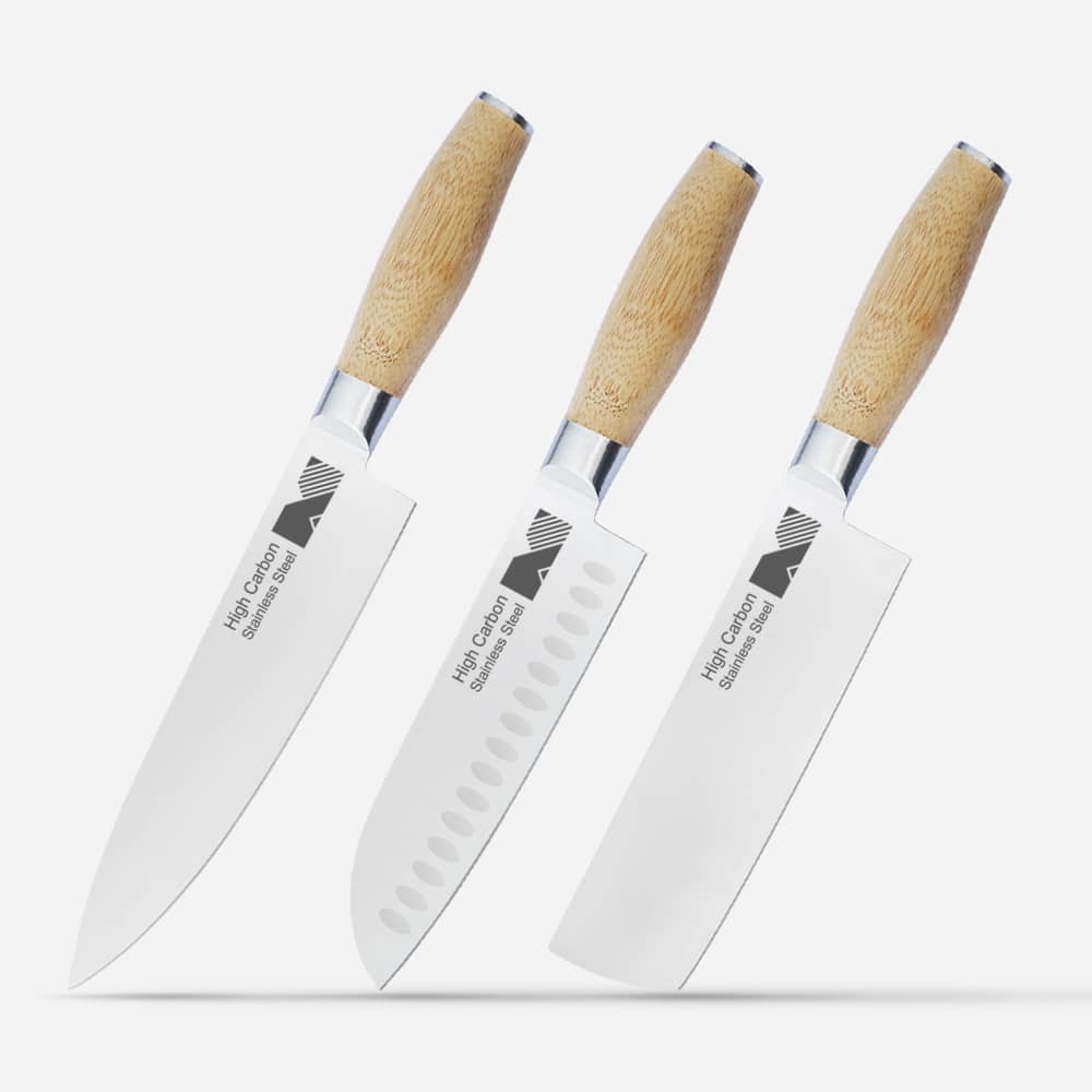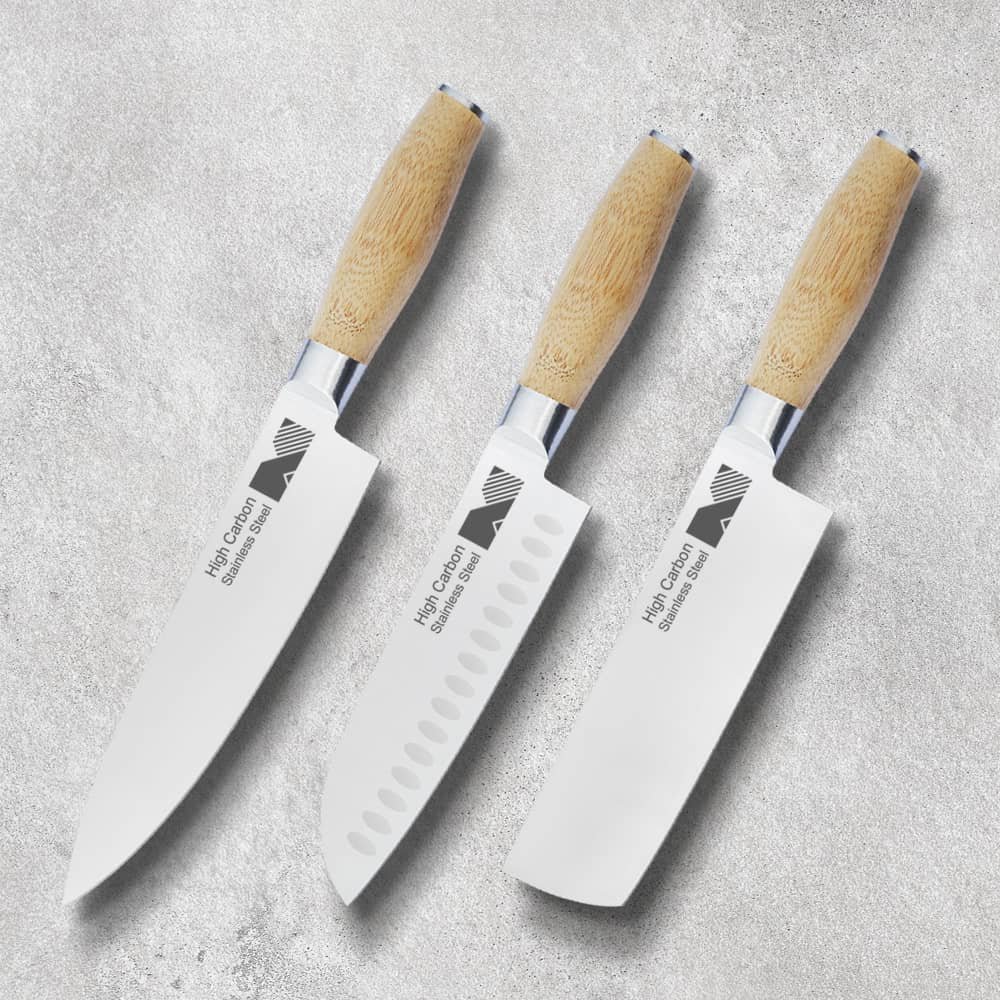 Set of 3 Kitchen Knife with Bamboo Handle